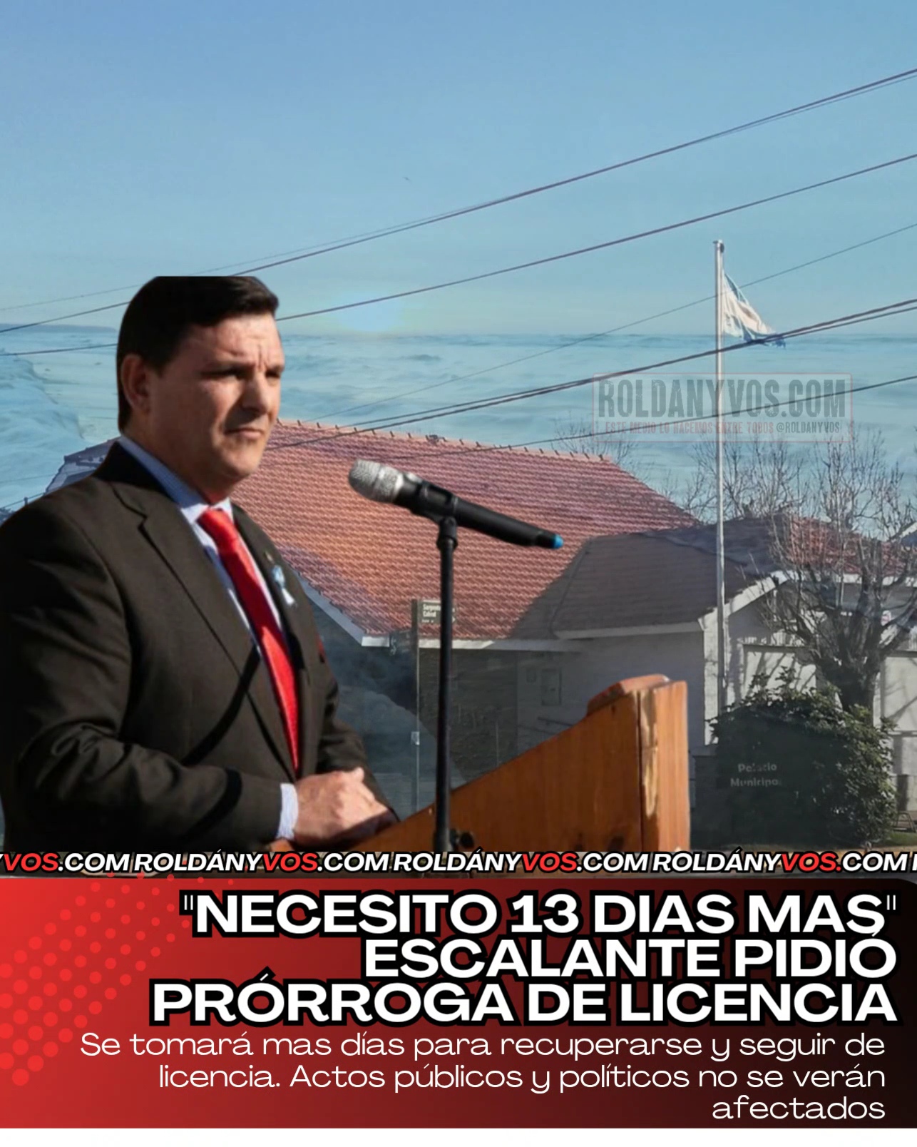 🔹El intendente de Roldán, Daniel Escalante, presentó una nota formal al Honorable Concejo Municipal solicitando la prórroga de su licencia por razones de salud. Según el documento ingresado este lunes a la Mesa de Entradas del Concejo, el pedido abarca trece días, desde el miércoles 12 hasta el lunes 24 de noviembre inclusive, siguiendo la recomendación de los profesionales que lo atienden tras su reciente intervención quirúrgica.
