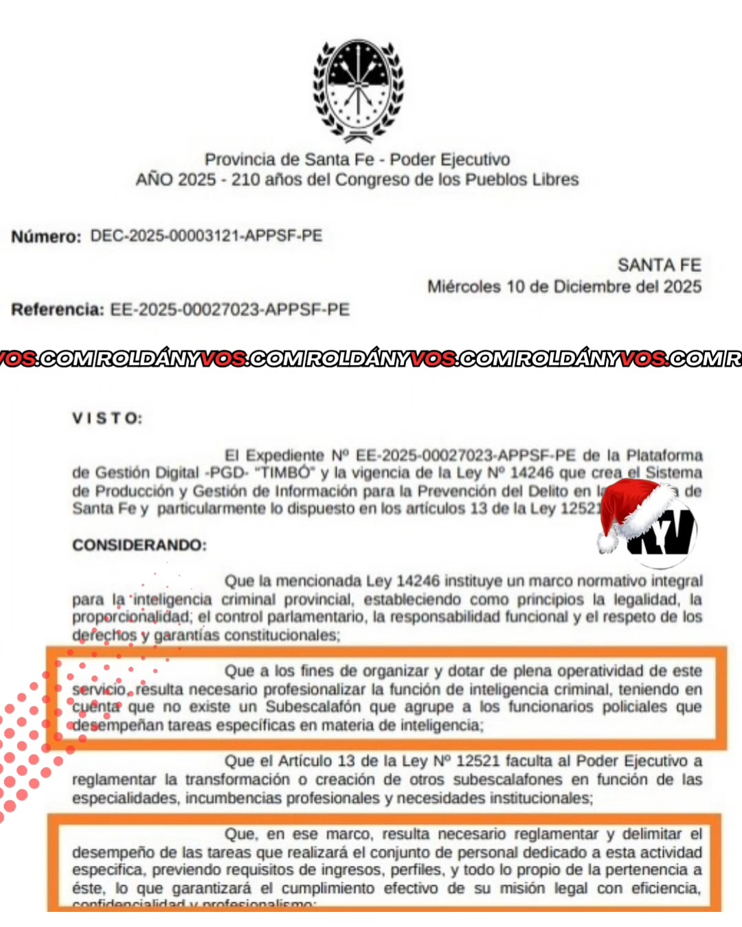 El Gobierno de Santa Fe dio un paso fuerte –y polémico– en materia de seguridad: mediante el Decreto Nº 3121, firmado el 10 de diciembre de 2025, el gobernador Maximiliano Pullaro oficializó la creación del Subescalafón Inteligencia dentro del escalafón policial. Una estructura que, según la letra del decreto, busca “profesionalizar” las tareas de obtención y análisis de información criminal. Pero, lejos de disipar dudas, la medida reaviva temores históricos: ¿modernización o el armado de una estructura de inteligencia paralela bajo control directo del poder político?