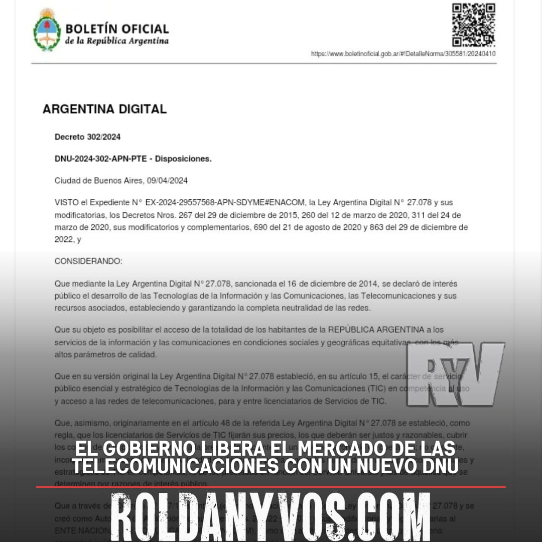 El Decreto 302/2024, publicado en el Boletín Oficial, anula un decreto con el que Alberto Fernández buscó controlar los precios de la industria de las telecomunicaciones: cable, telefonía (fija y móvil) e internet.