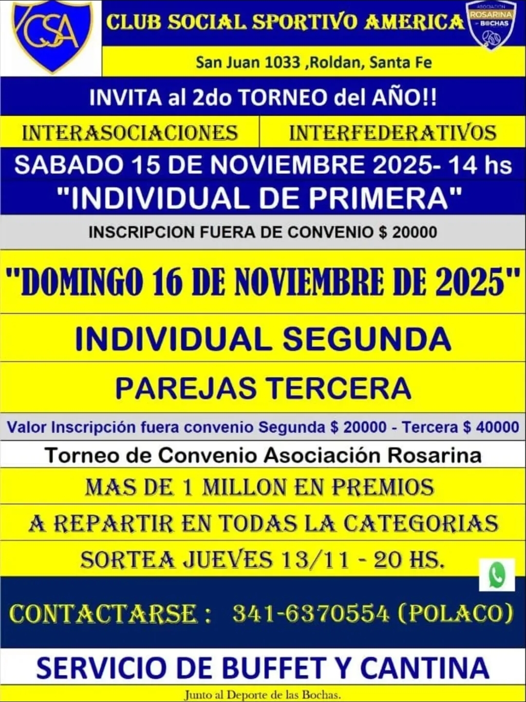 El Club Social Sportivo América, ubicado en San Juan 1033, Roldán (Santa Fe), invita a todos los bochófilos a participar del 2° Torneo del Año, un evento que reunirá a jugadores de distintas asociaciones y federaciones bajo el formato interasociaciones e interfederativos.