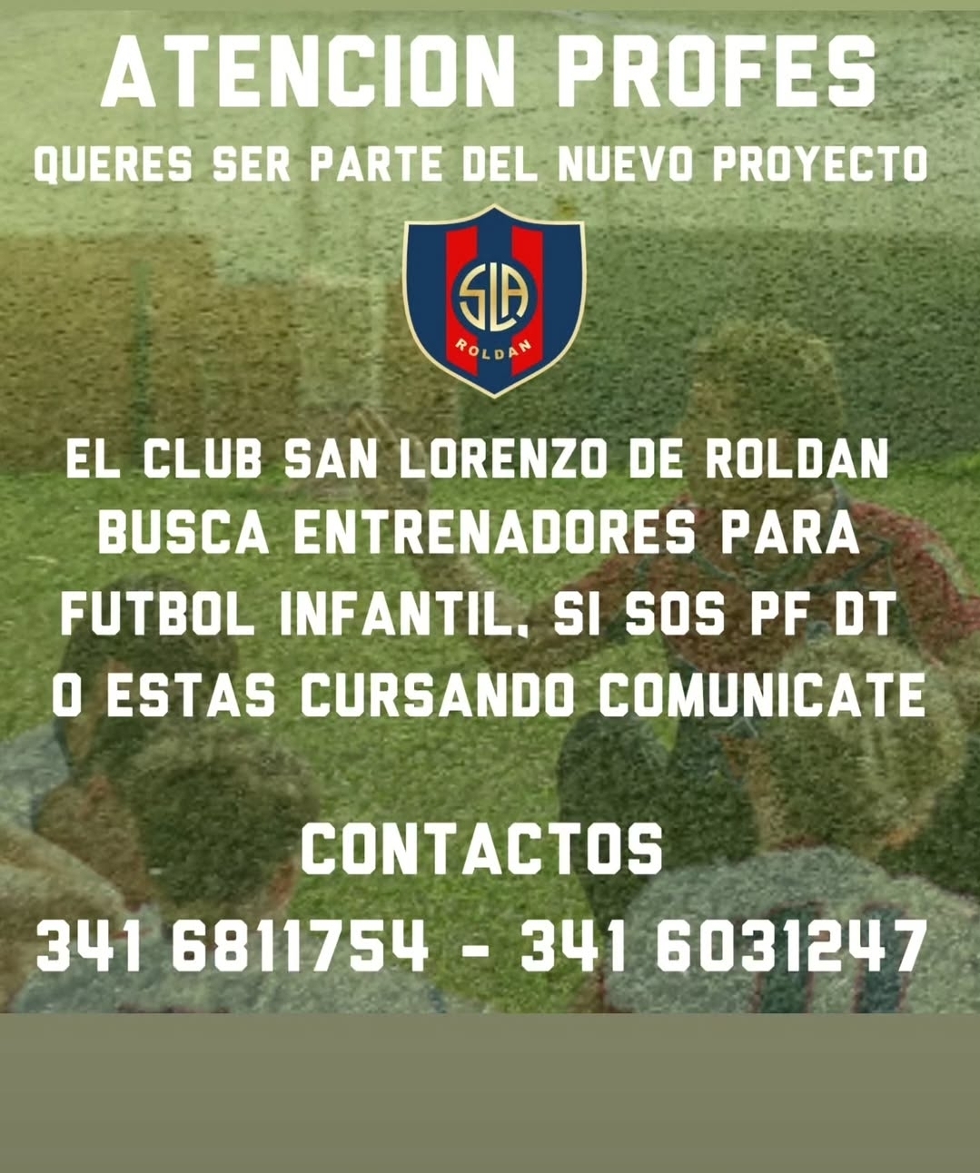 ✅️ El Club San Lorenzo de Roldán @sanlorenzoderoldan lanzó una convocatoria dirigida a docentes y profesores interesados en sumarse a un nuevo proyecto educativo que se encuentra en etapa de desarrollo.