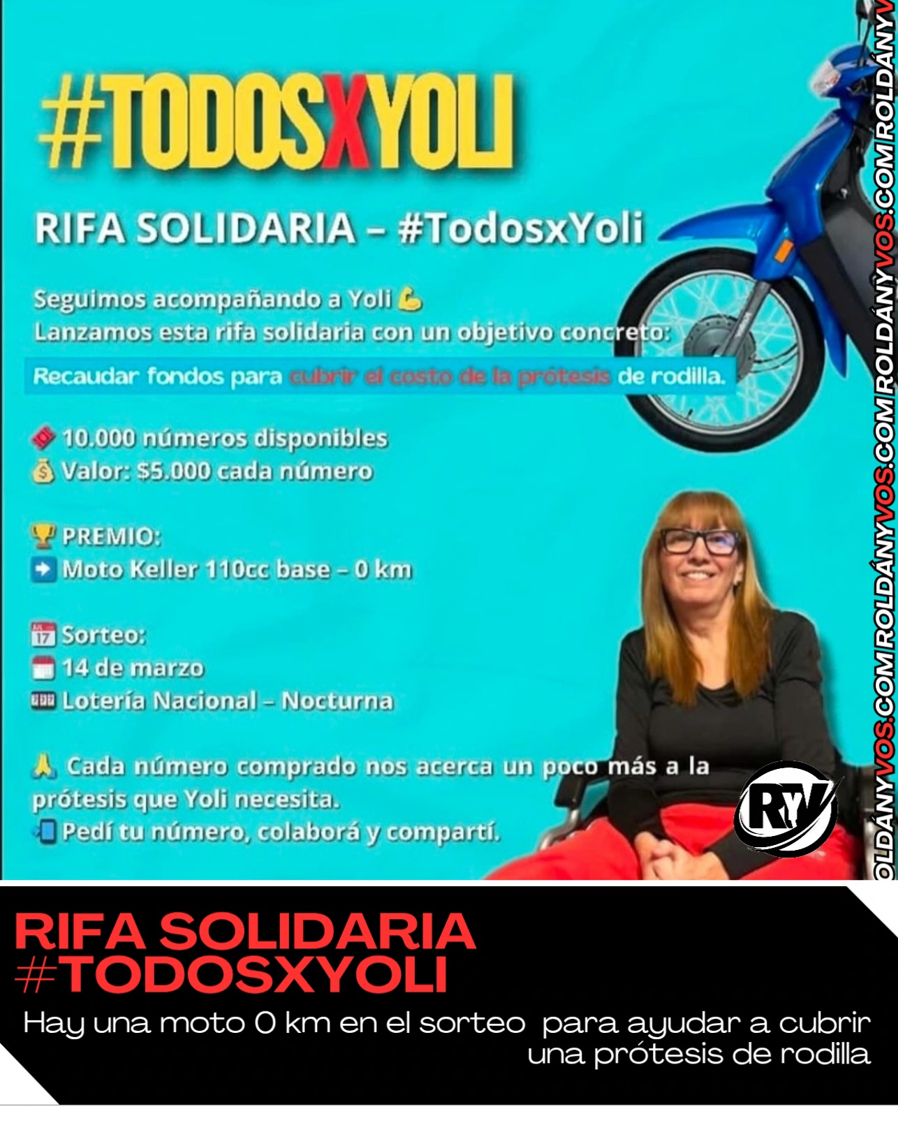 Bajo el lema TodosxYoli, se lanzó una rifa solidaria con un objetivo claro y urgente: recaudar fondos para cubrir el costo de una prótesis de rodilla que Yoli necesita.