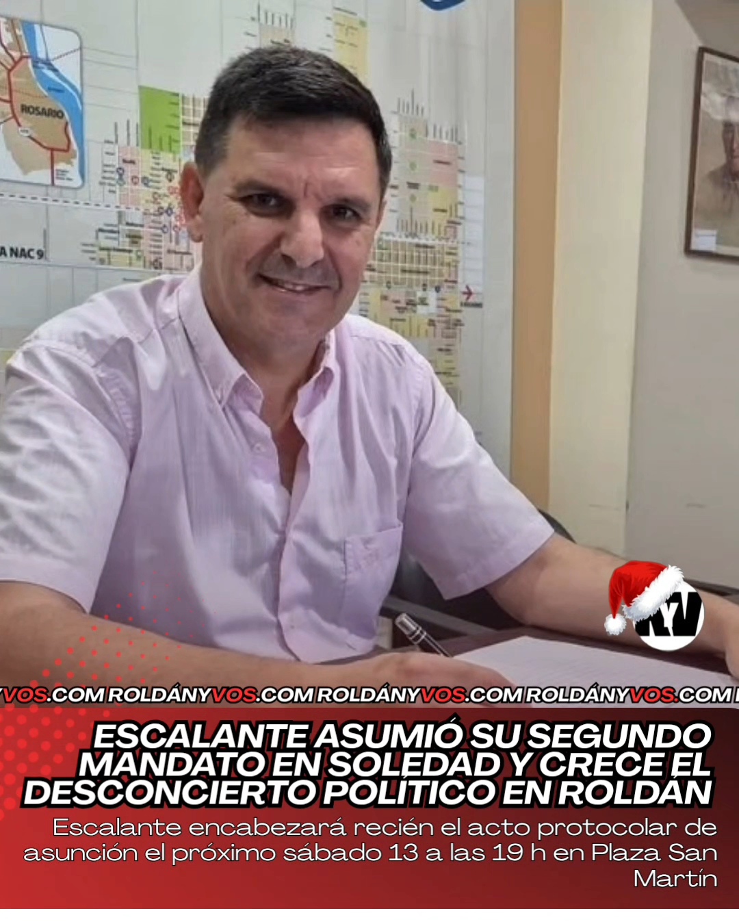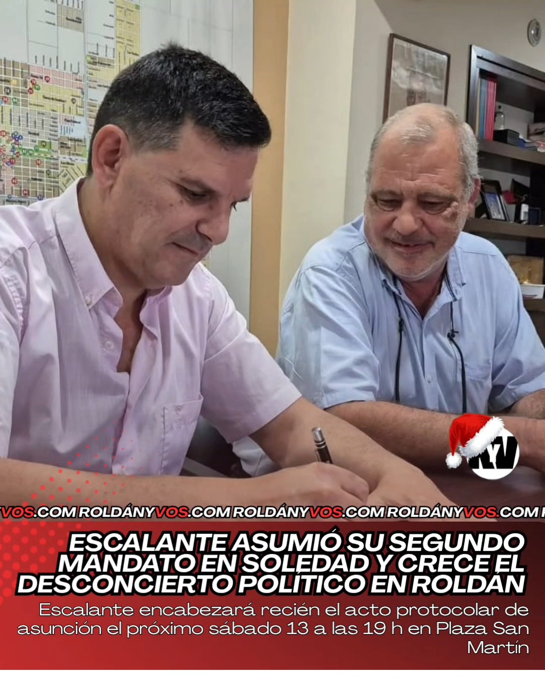 En las primeras horas de este miércoles, Daniel Escalante tomó posesión formal de su segundo mandato como intendente de Roldán, en un acto administrativo realizado puertas adentro, dentro del despacho de Intendencia y con la presencia de un escribano público, tal como marca el procedimiento legal.