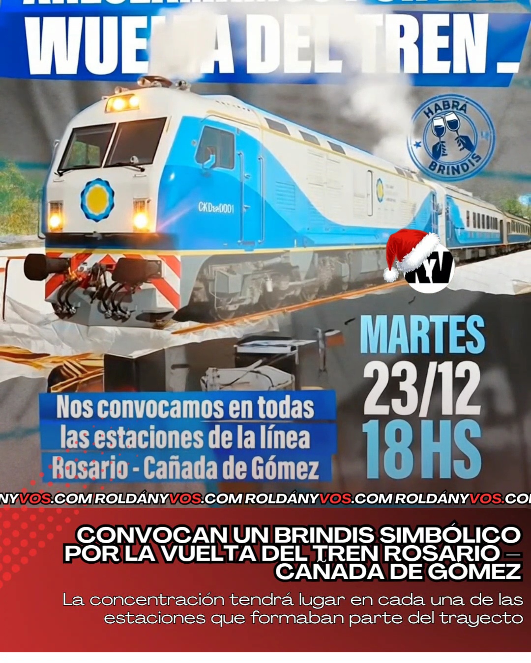 Este martes 23 de diciembre a las 18 h, organizaciones y usuarios del tren y vecinos de la región se convocan en todas las estaciones del servicio Rosario – Cañada de Gómez para realizar un brindis simbólico exigiendo el regreso del tren que unía ambas ciudades 🚂🛤🇦🇷🙌🏽