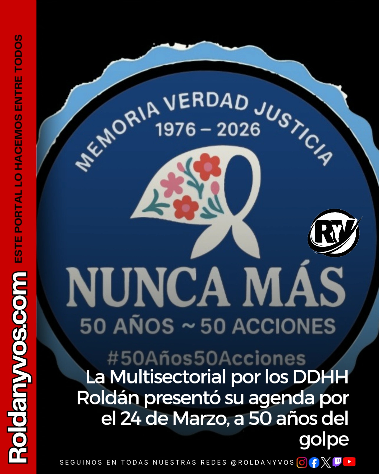 A un mes del cumplimiento de los 50 años del golpe de Estado que dio inicio a la última dictadura militar en Argentina (1976-1983), la Multisectorial por los Derechos Humanos de Roldán dio a conocer su agenda tentativa de actividades en el marco del 24 de marzo, Día Nacional de la Memoria por la Verdad y la Justicia.