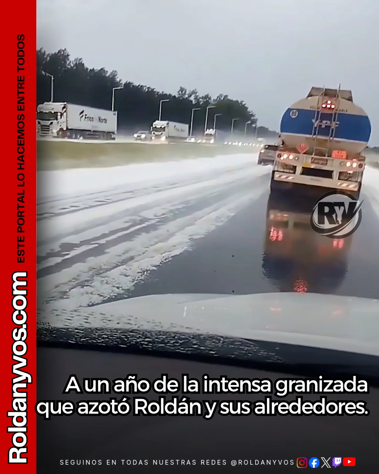 El 28 de marzo de 2025, una violenta tormenta de granizo sorprendió a Roldán y toda la región, dejando calles cubiertas de hielo, daños materiales y una postal que muchos compararon con una nevada.