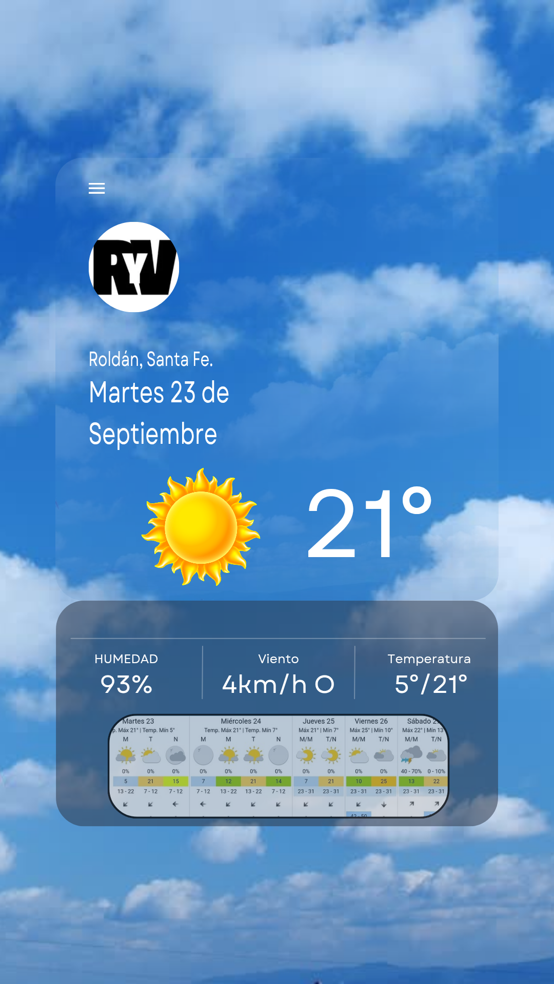 ▶️ Para mañana, un día muy similar al de hoy, minima de 7° y máxima de 21°, con cielo parcialmente nublado...