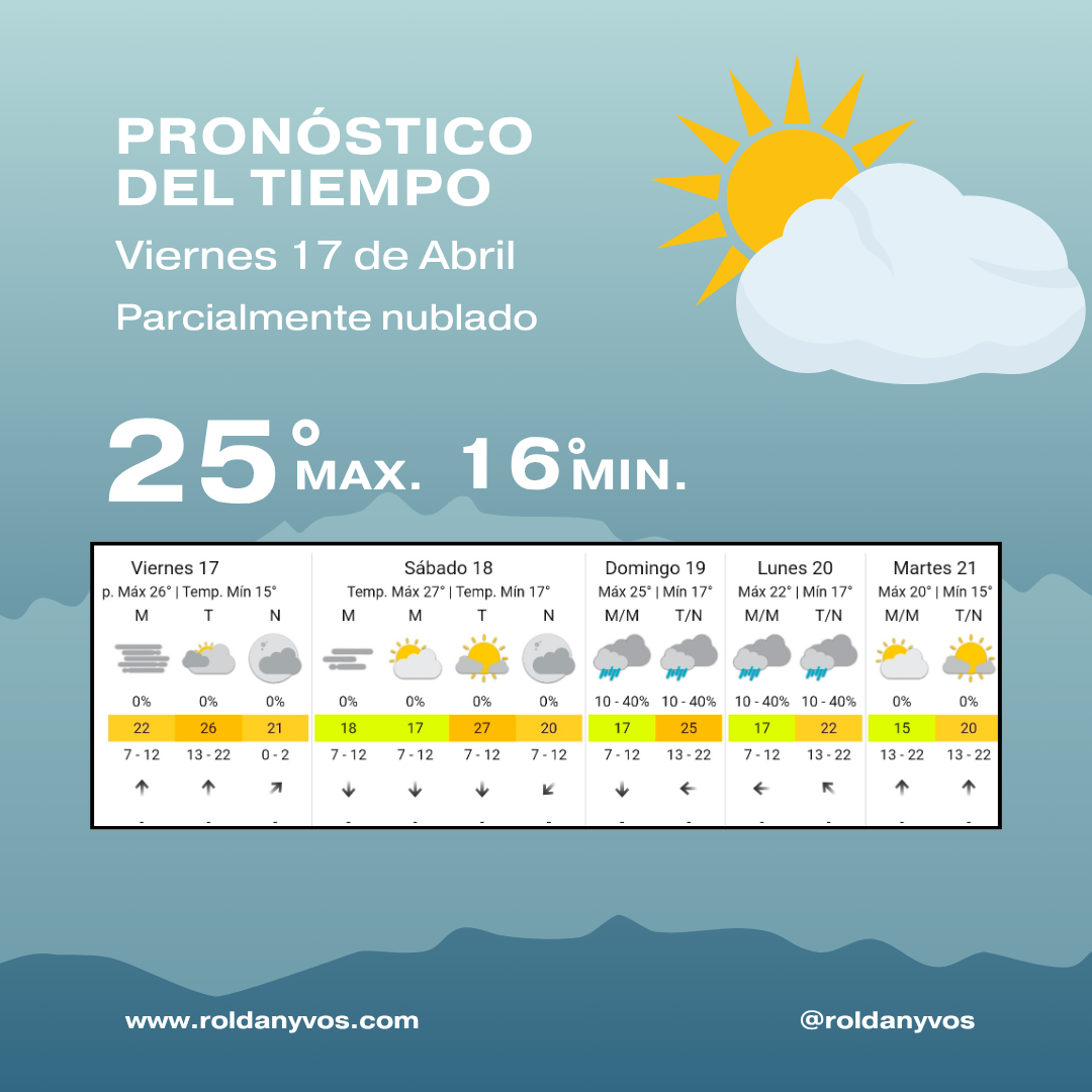 Después de varios días intensos, el clima acompañará para regalar un viernes más llevadero en Roldán. Un mate, unos minutos de pausa y el último esfuerzo antes del fin de semana pueden ser una buena combinación para cerrar la semana de otra manera.