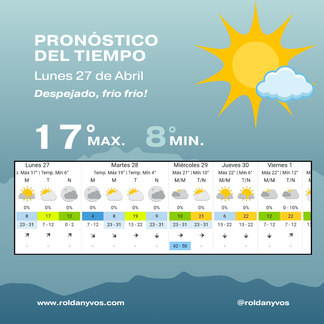 La mañana de este viernes 24 de abril arrancó con una sensación más fría de lo habitual en Roldán. A primera hora, la temperatura se ubicó cerca de los 10…