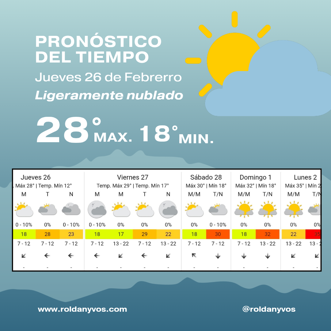 Jueves 26 de Febrero, parcialmente nublado y sube la tempera…
