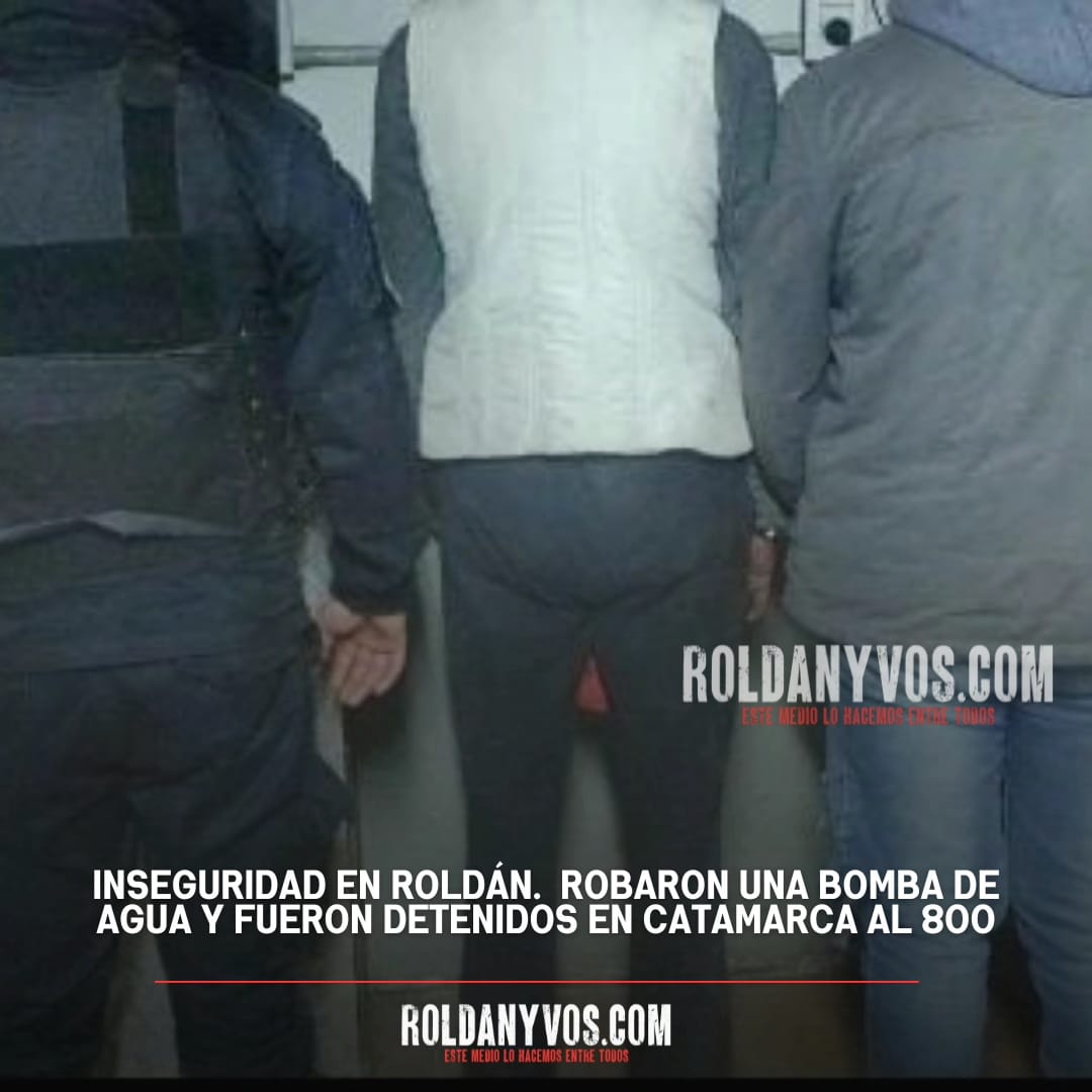 En horas de la madrugada de hoy martes, personal del CRER, fue solicitado por el 911 a calle Catamarca a la altura del 800, por tres individuos que se estarían dando a la fuga por calle Marco azteca hacia el Oeste, luego de cometer un hecho ilícito, según observó personal de la GUR, y con datos indicados por la central de monitoreo los oficiales dieron alcance a los involucrados en la intersección de calles Vélez Sarfield y Facundo Quiroga, dónde momentos más tarde se hizo presente un hombre quien reconoció a los aprehendidos como autores de la sustracción de la bomba de agua de su domicilio.