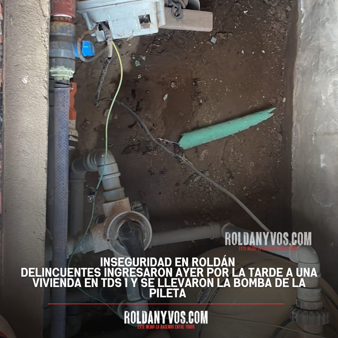 En Roldán, la inseguridad sigue siendo una preocupación para los vecinos. En calle Liniers al 100, en Tierra de Sueños 1, se produjo un robo que que vuelve a poner en alerta a todos los vecinos. Según la información recabada por los propietarios de la vivienda afectada, los delincuentes habrían actuado durante la tarde de ayer. Estos ingresaron al jardín de la propiedad y se llevaron la bomba de la pileta, causando no solo pérdidas materiales, sino también una sensación de vulnerabilidad entre los residentes.