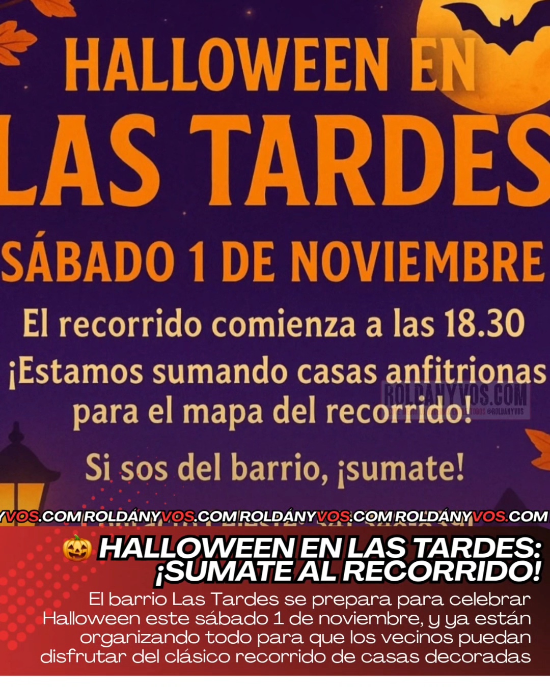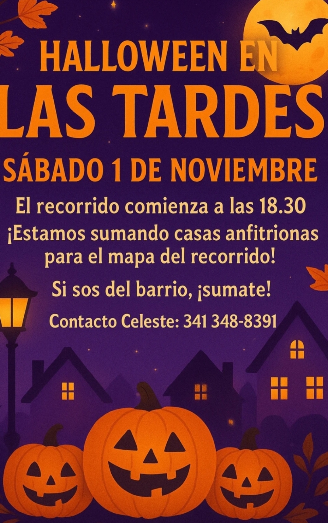 El barrio Las Tardes se prepara para celebrar Halloween este sábado 1 de noviembre, y ya están organizando todo para que los vecinos puedan disfrutar del clásico recorrido de casas decoradas. La actividad comenzará a las 18:30 y los organizadores invitan a todos los vecinos a ser parte del evento como casas anfitrionas.