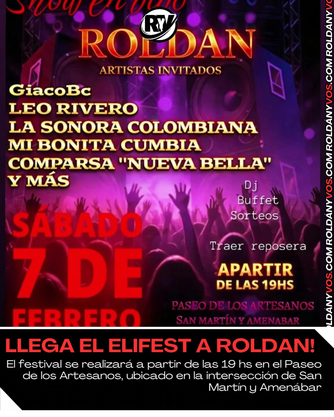 Este sábado 7 de febrero, Roldán será escenario de una nueva edición del Eli Fest, un evento musical que promete una noche a puro ritmo, baile y diversión para toda la comunidad.