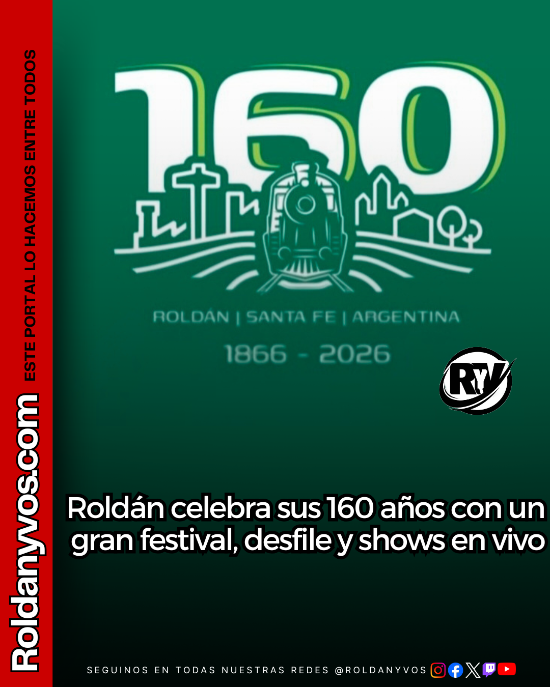 Roldán cumple 160 años y lo festeja a lo grande. La ciudad se viste de celebración para conmemorar un nuevo aniversario con una propuesta que combinará tradición, cultura y entretenimiento, convocando a vecinos y visitantes a compartir un día inolvidable.