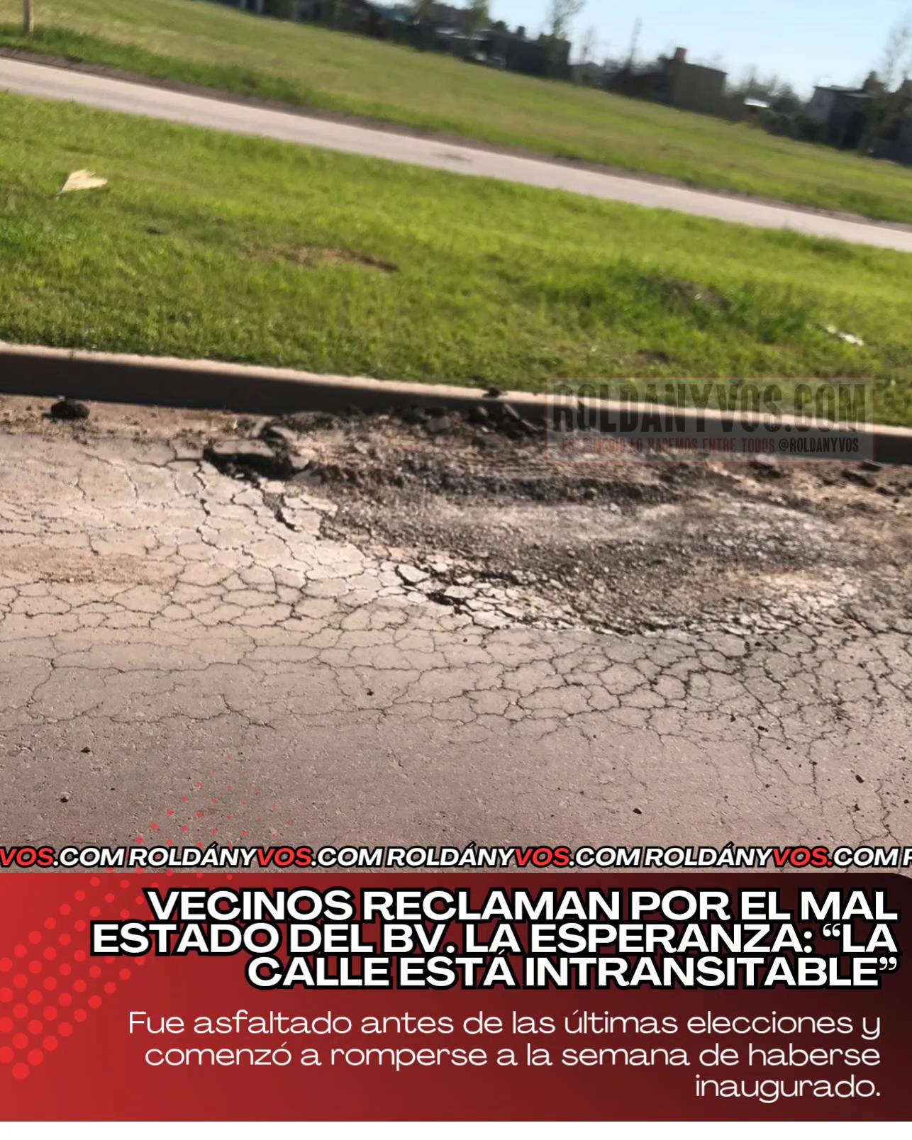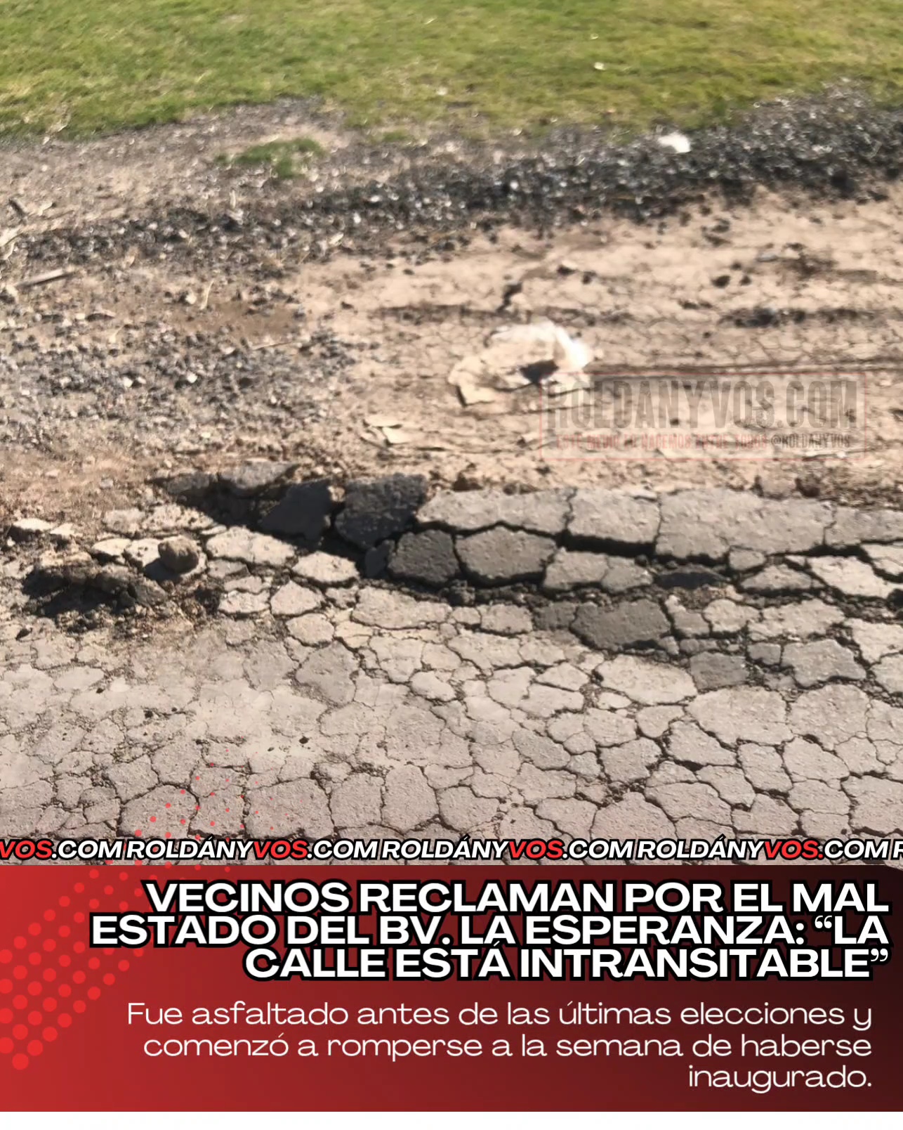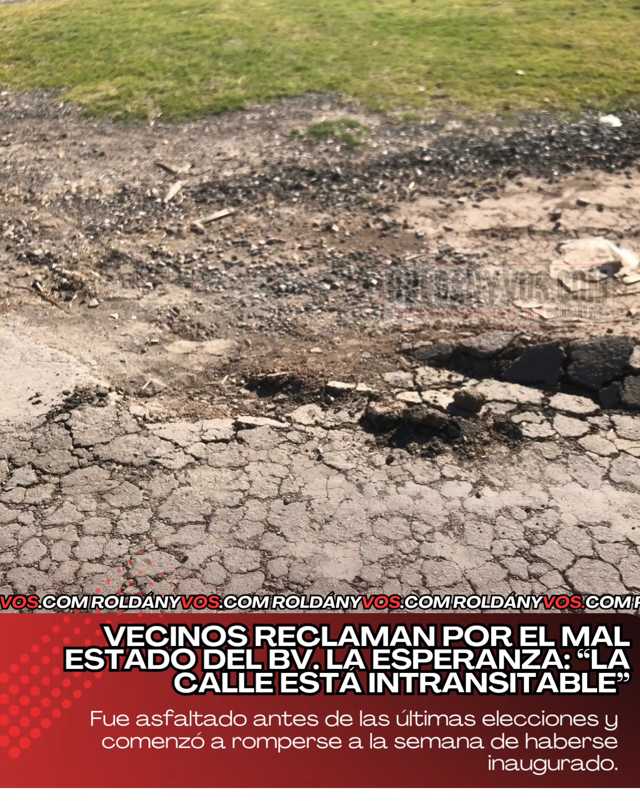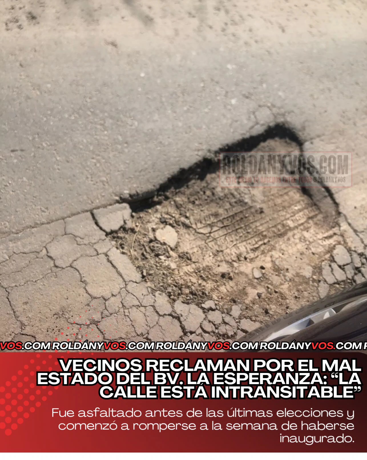 Vecinos del boulevard La Esperanza expresaron su malestar por el deterioro del pavimento, que —según denuncian— fue asfaltado antes de las últimas elecciones y comenzó a romperse a la semana de haberse inaugurado.