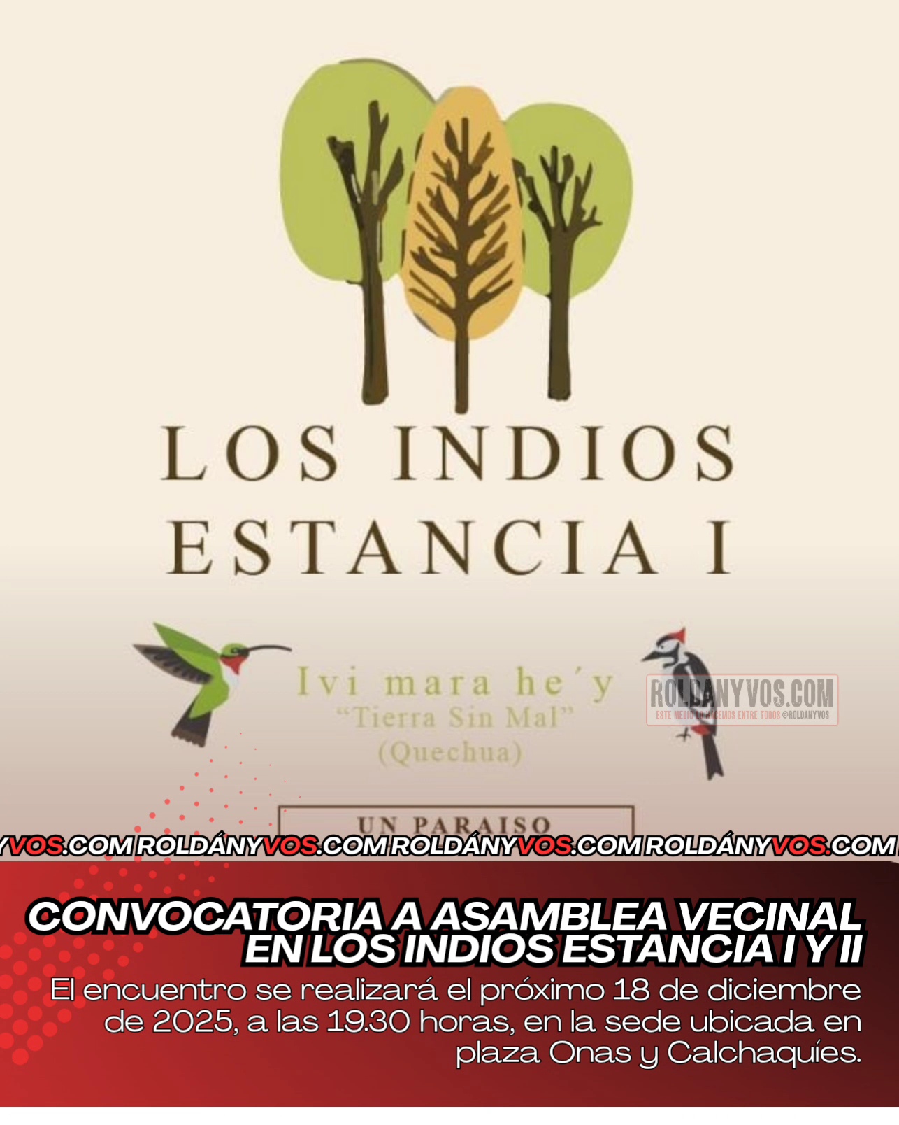 La comisión vecinal de Los Indios Estancia I y II anunció la convocatoria formal a una nueva asamblea barrial con el objetivo de renovar sus autoridades. El encuentro se realizará el próximo 18 de diciembre de 2025, a las 19.30 horas, en la sede ubicada en plaza Onas y Calchaquíes.