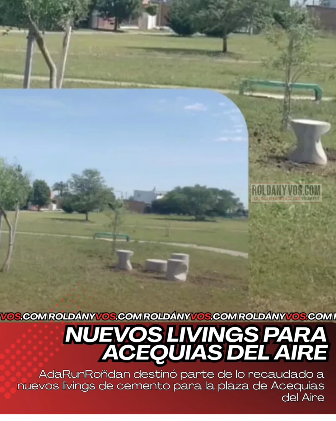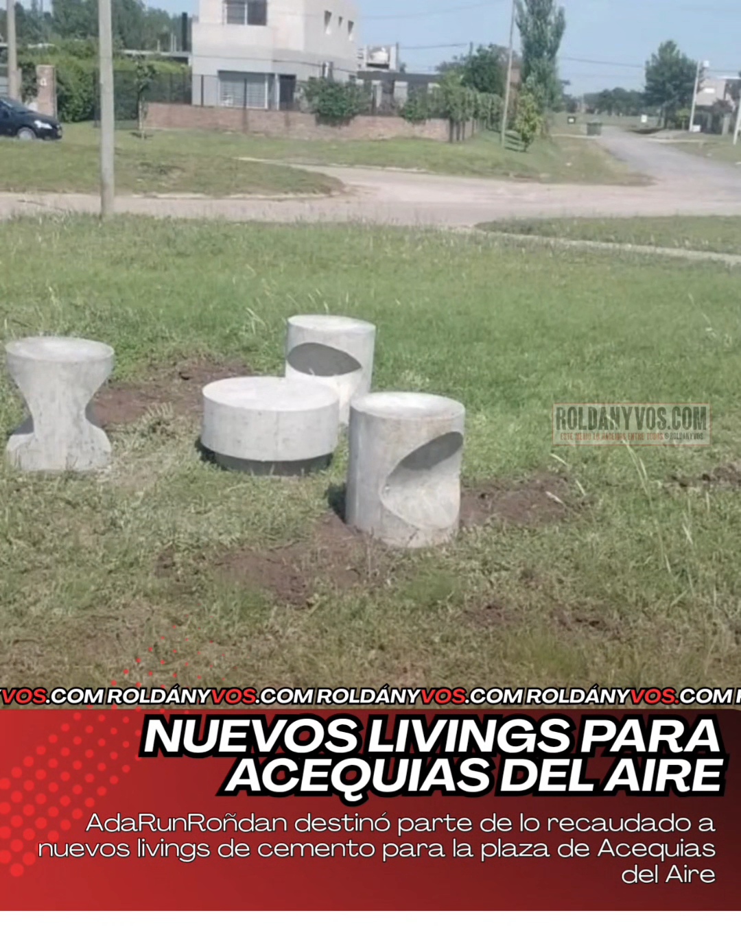 La organización de AdaRun Roldán compartió un nuevo paso solidario logrado gracias a la participación de los vecinos en la 2da Edición de la carrera. Parte de lo recaudado fue destinado a la compra de dos livings de cemento que ya fueron instalados en la plaza del barrio Acequias del Aire, un espacio que viene creciendo y sumando mejoras para que más familias puedan disfrutarlo.