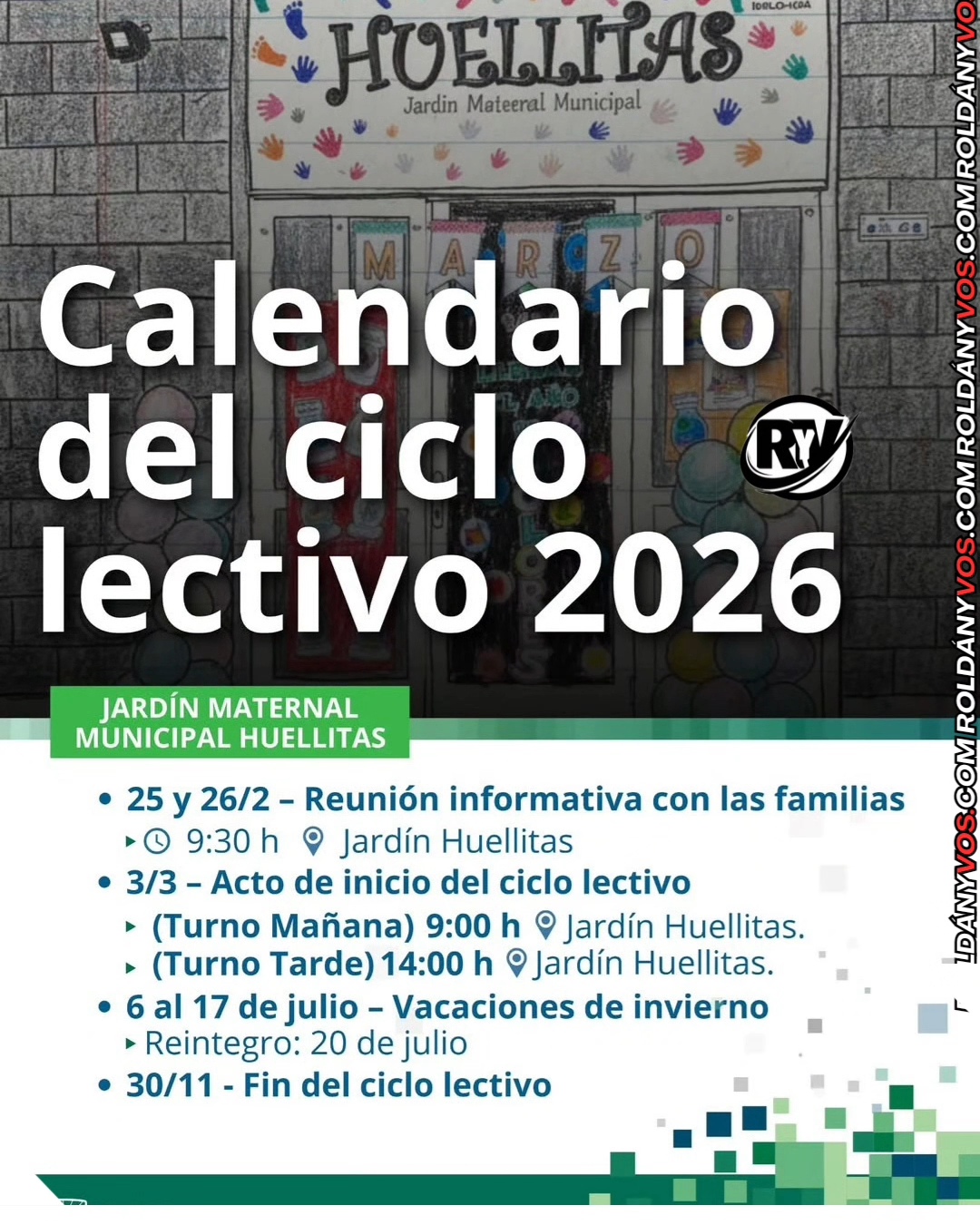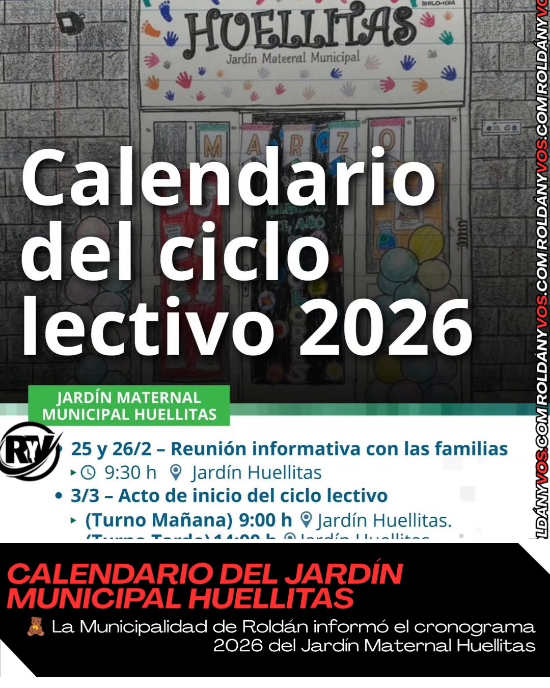 La Secretaría de Cultura, Educación, Turismo y Deporte de la Municipalidad de Roldán dio a conocer el cronograma oficial del ciclo lectivo 2026 del Jardín Maternal Municipal Huellitas, destinado a organizar el inicio de actividades y los principales momentos del año educativo.