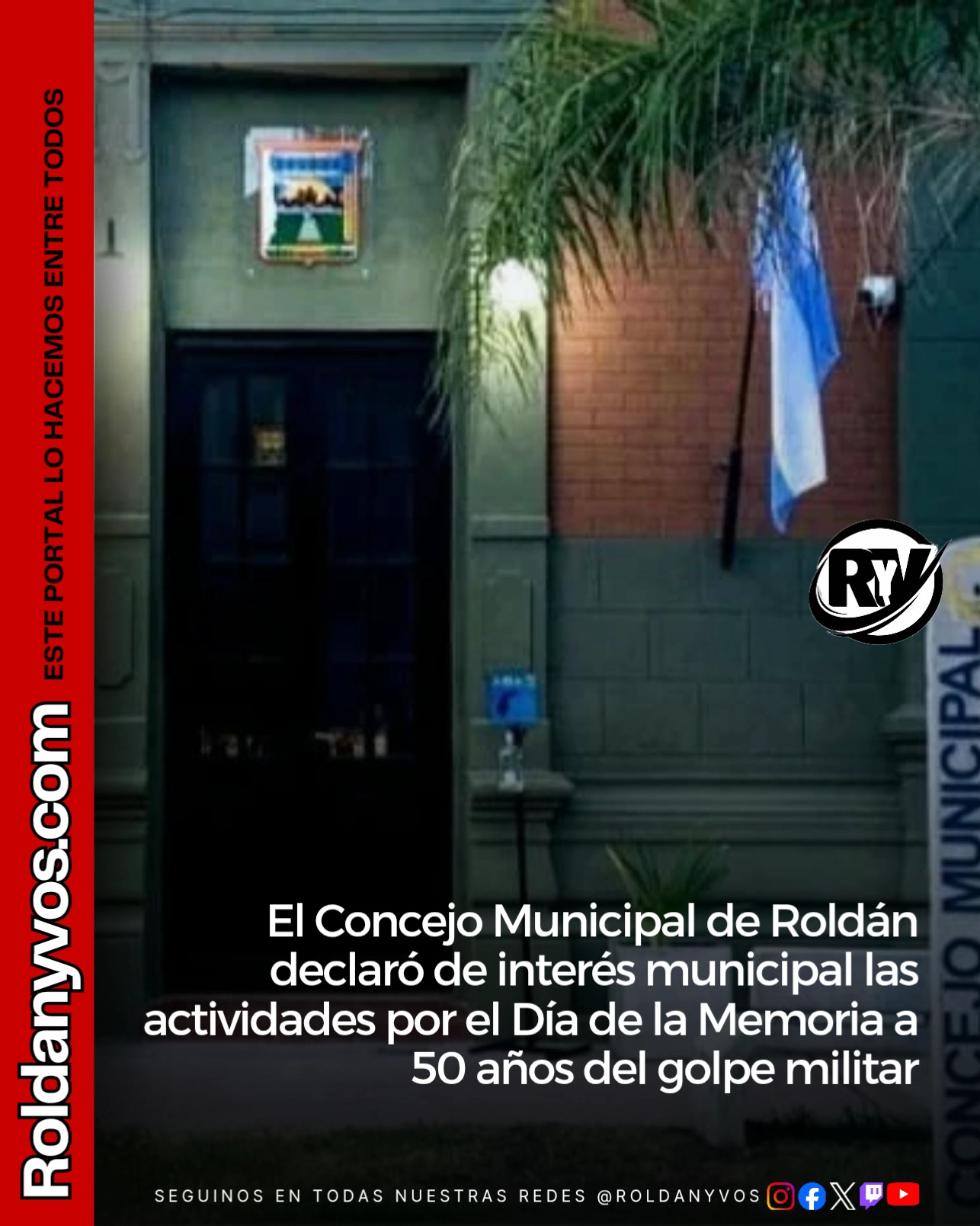 El Concejo Municipal de Roldán aprobó la declaración de interés municipal del acto y las actividades organizadas en la ciudad en el marco del Día de la Memoria por la Verdad y la Justicia, al cumplirse 50 años del golpe militar de 1976.