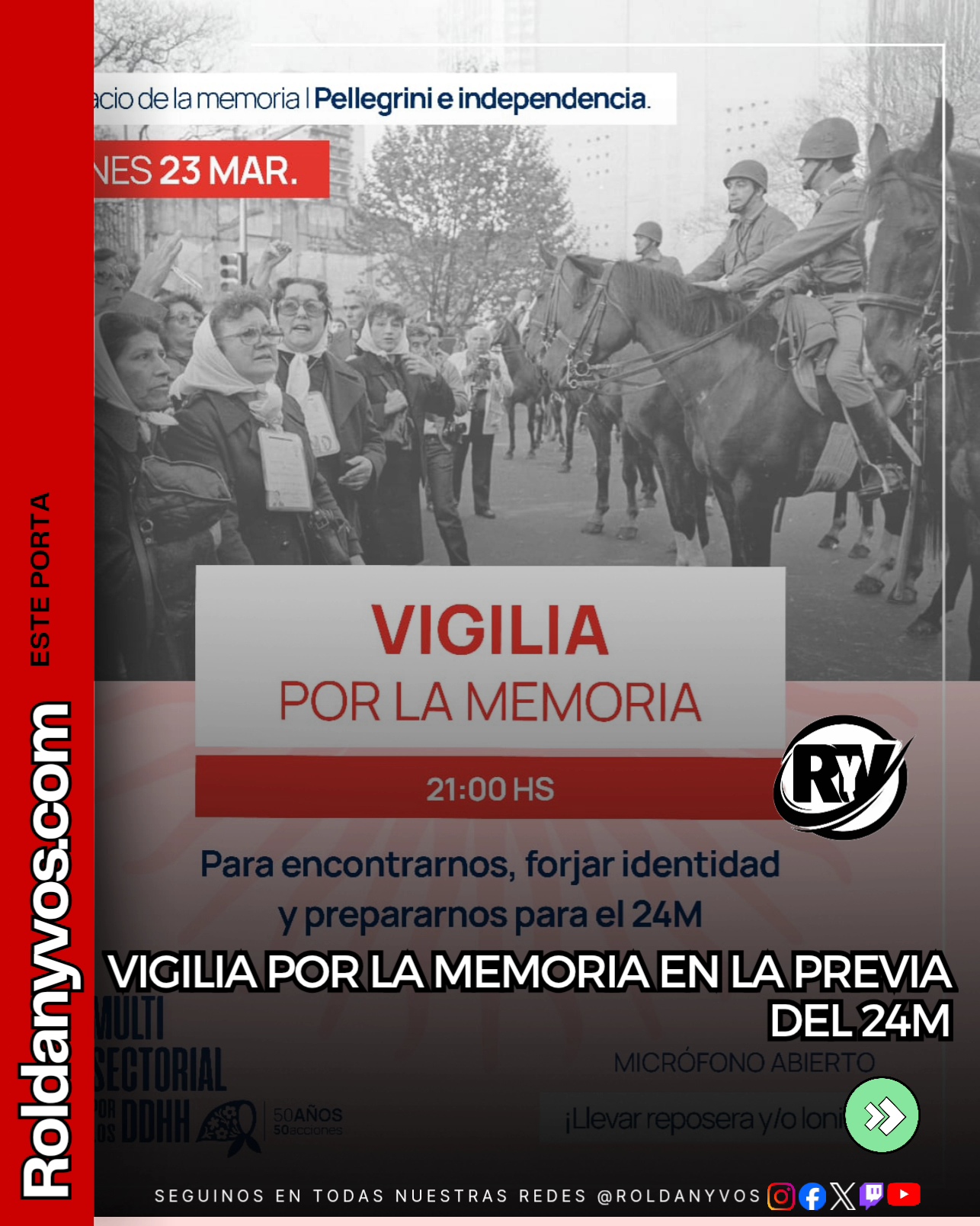 🚨🕯️ ROLDÁN: VIGILIA POR LA MEMORIA EN LA PREVIA DEL 24M