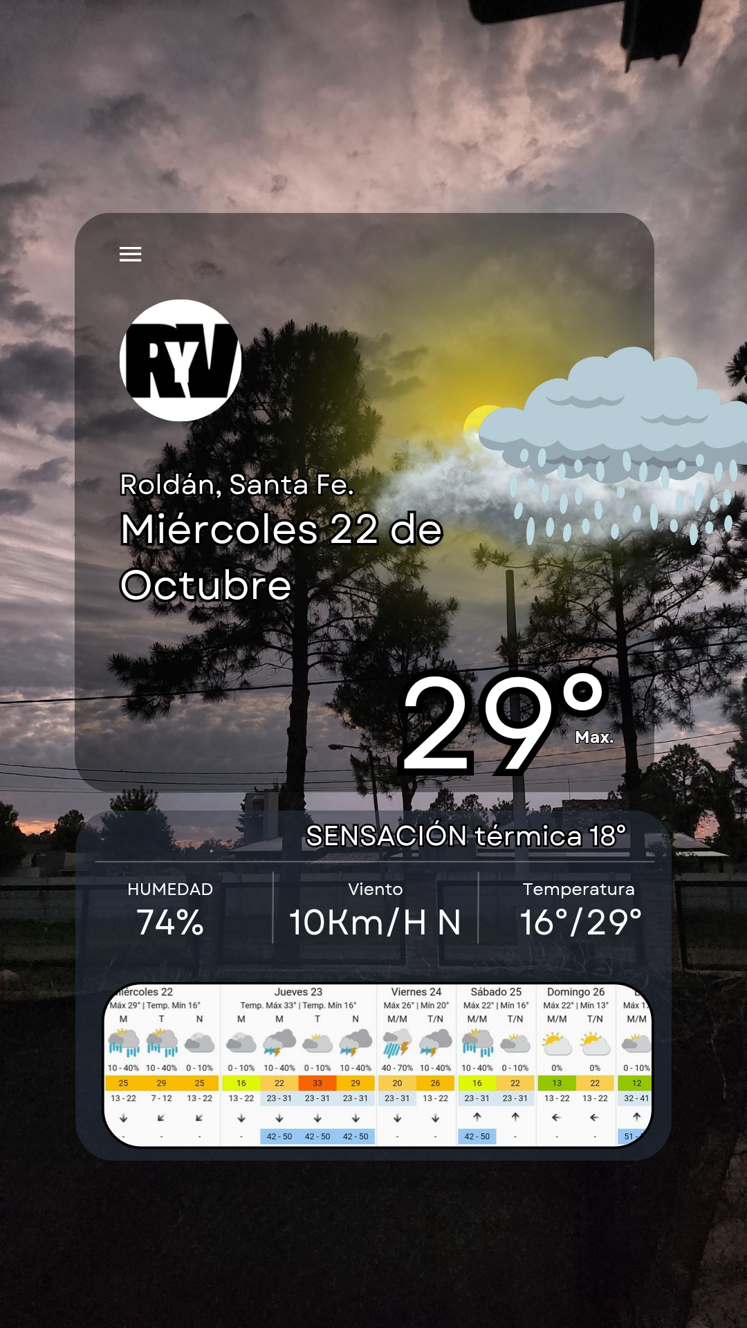 ✅️Según indica el @smn_argentina para este Miércoles 22 de Octubre, es que tendremos una jornada inestable, hay chances de algunas lluvias aisladas y algunos chaparrones, la probabilidad no es alta pero....por las dudas...llevate el paraguas, el mas chiquito....la sensación térmica a las 6:45am es de 18° y la temperatura máxima para hoy llegar 29°.....osea, si llueve algo...no seria mucho....Al menos hoy....