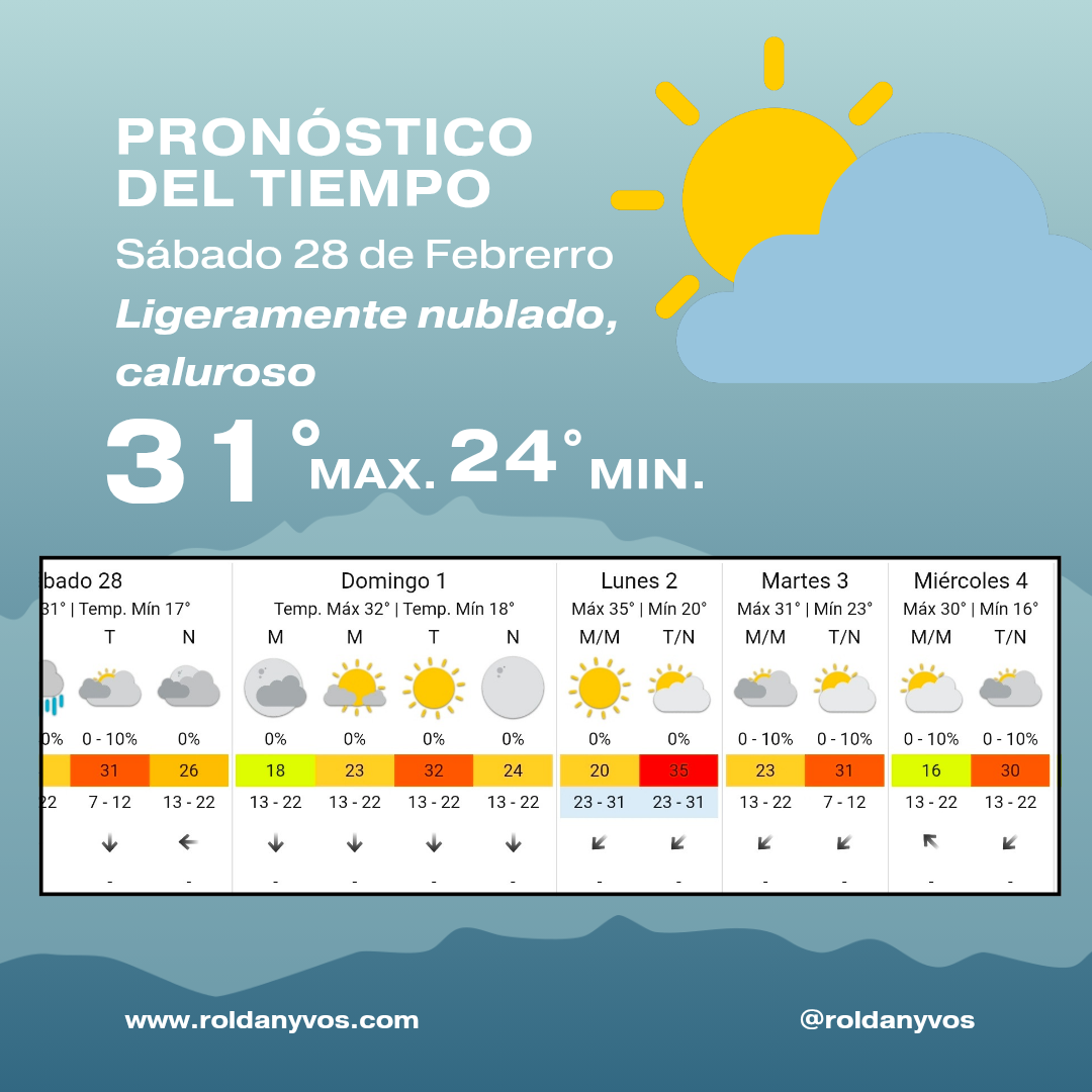 ✅️Para este sábado 28 de febrero, el @smn_argentina nos indica una jornada nublada, con algunos rayos de sol, que se van a sentir, con una temperatura máxima esperada de 31° 🔥🔥🔥🔥🔥 mucho calor.