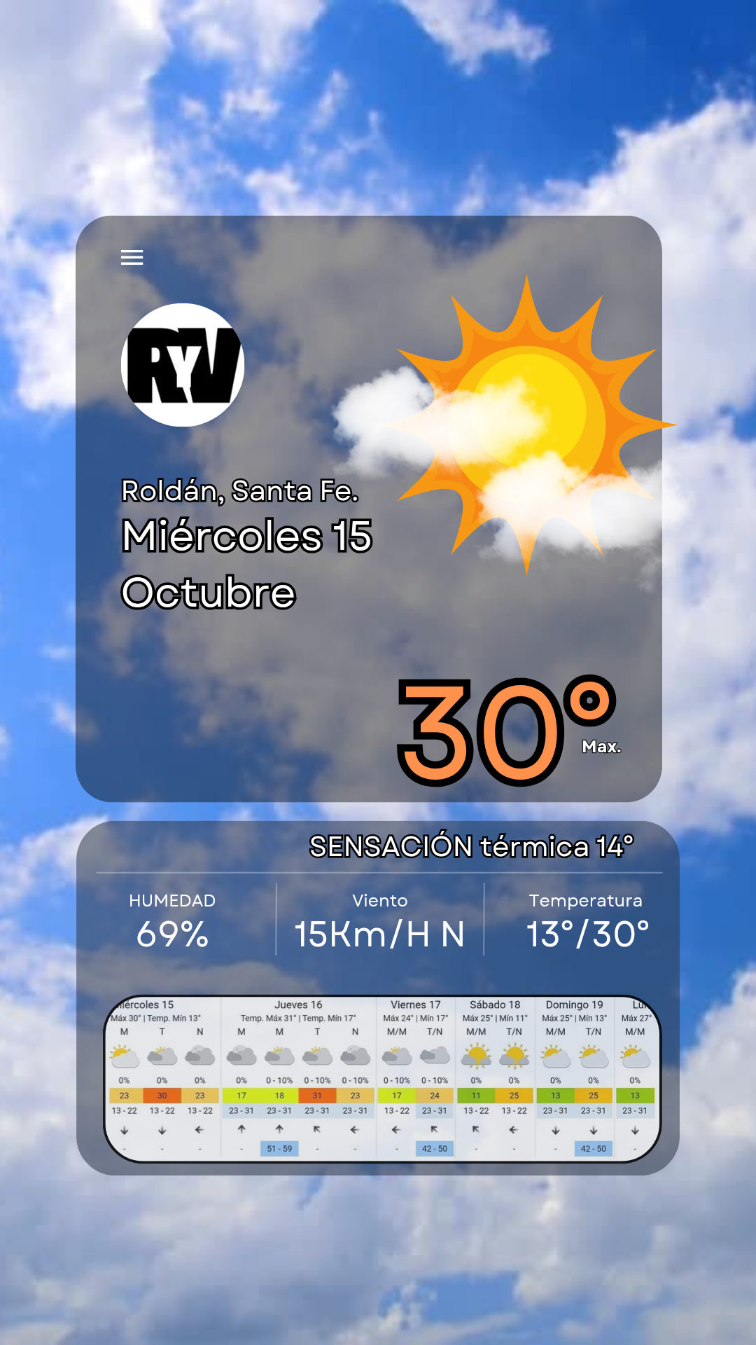 Este miércoles 15 de octubre, el calor no va a aflojar ni un poco 🥵. Hoy el termómetro va a trepar hasta los 30 °C, con una mínima de 13 °C y una sensación térmica de 14° ahora para salir de casa..